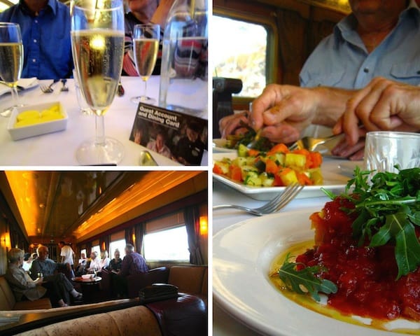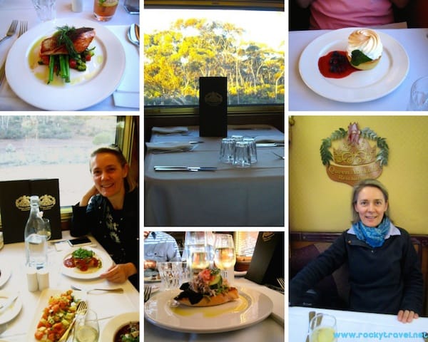My favourite dish was the grilled salmon from Tasmania, the Crabs on Bruschetta from W.A., and my favourite sparkling wine from W.A.: Vasse Felix! (Australians call it Champagne!). All drinks, meals, and snacks you have on the train are included in Indian Pacific Packages.
